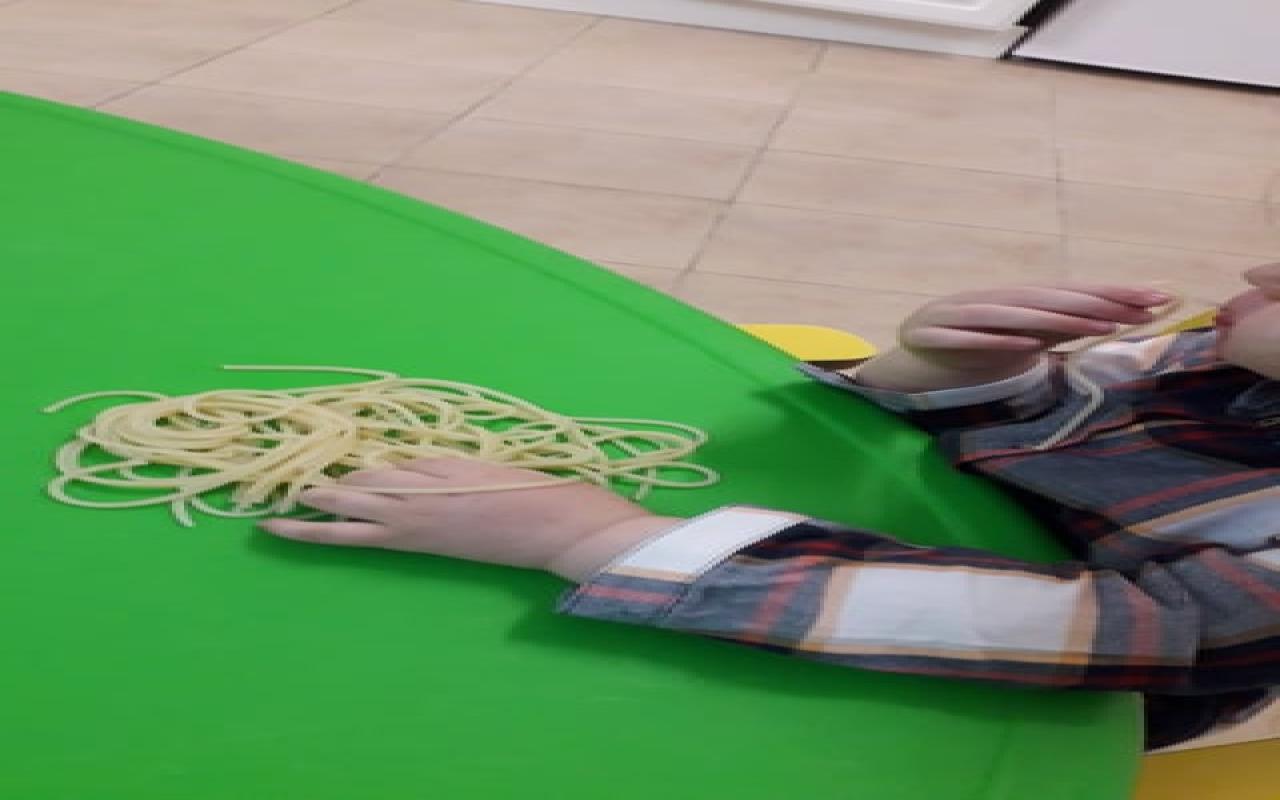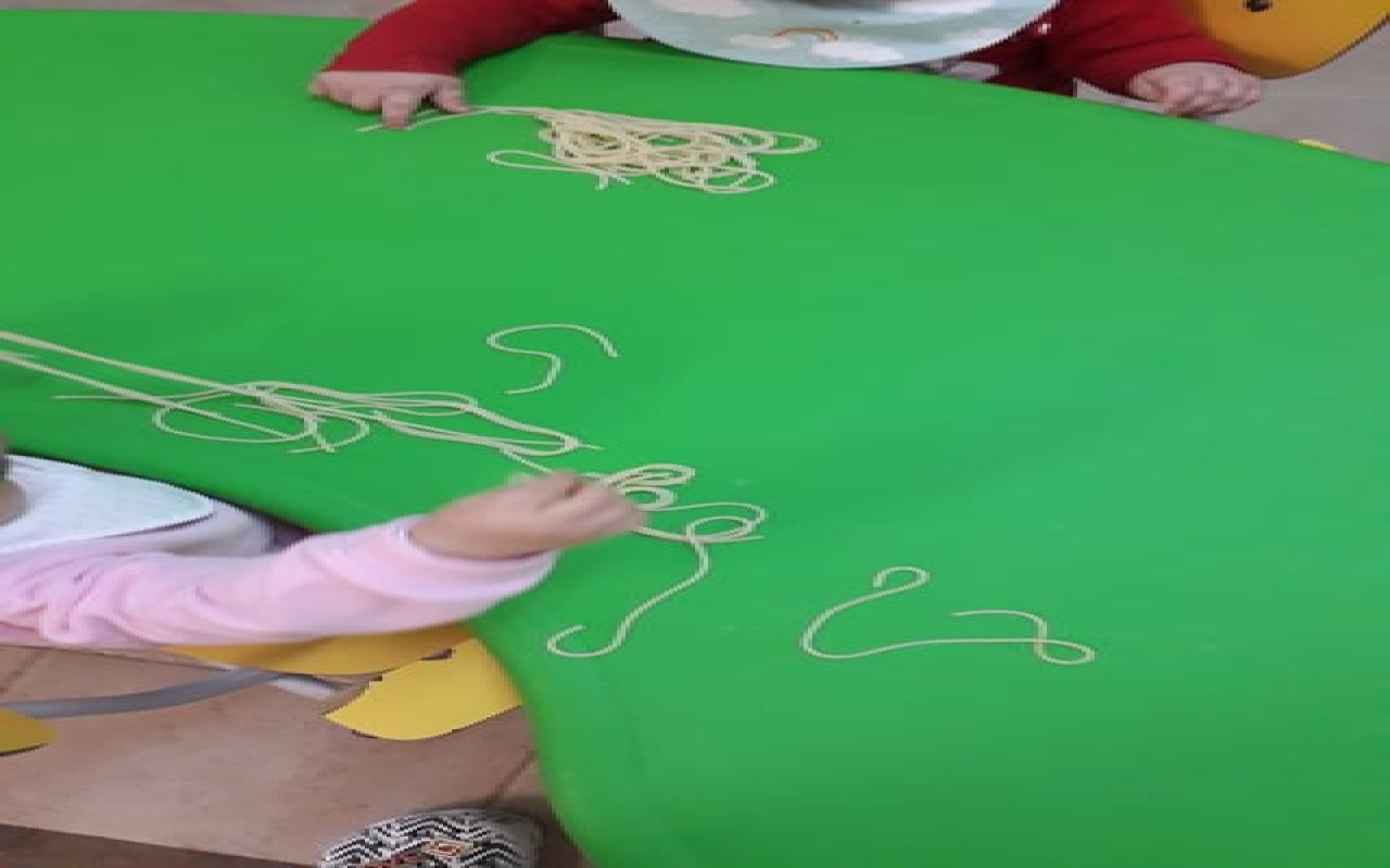 A perceção sensorial é aquela que mais toca estas idades, por isso experienciámos esparguete cozido. Adoramos!